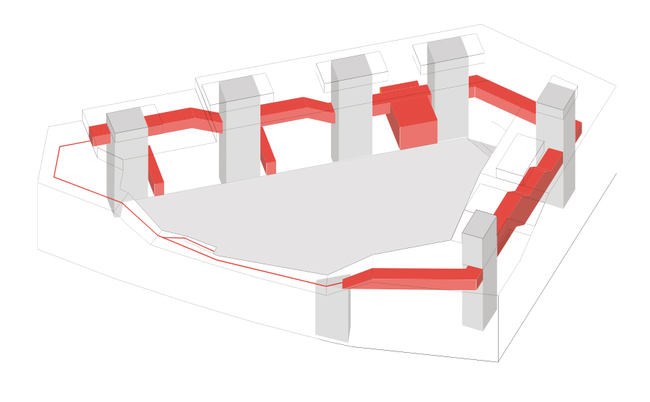 Large buildings with deep volumes often have poorly lighted and unattractive interior zones. In large projects, individual houses are usually arranged in rows, and their flats are usually only accessible via vertical staircases. This often restricts communication between the residents. How can unattractive inner zones be designed and used to improve spatial quality, promote communication between residents and connect different uses?