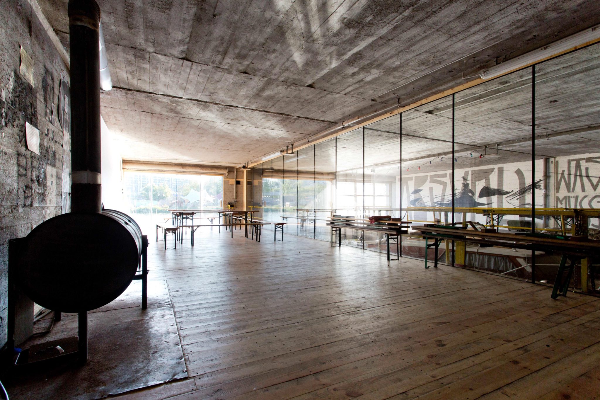 The three option spaces at Spreefeld, each with 128 m², are undetermined in their use and are available for rental requests. They are located on the ground floor and can be used as temporary shops, exhibition spaces, auditoriums, workshop spaces, etc. as long as they conduct the cooperative’s programme and are not primarily profit-oriented. Since the beginning of the project, one of the rooms has served as a workshop. A curatorial team from the residents manages the option spaces.