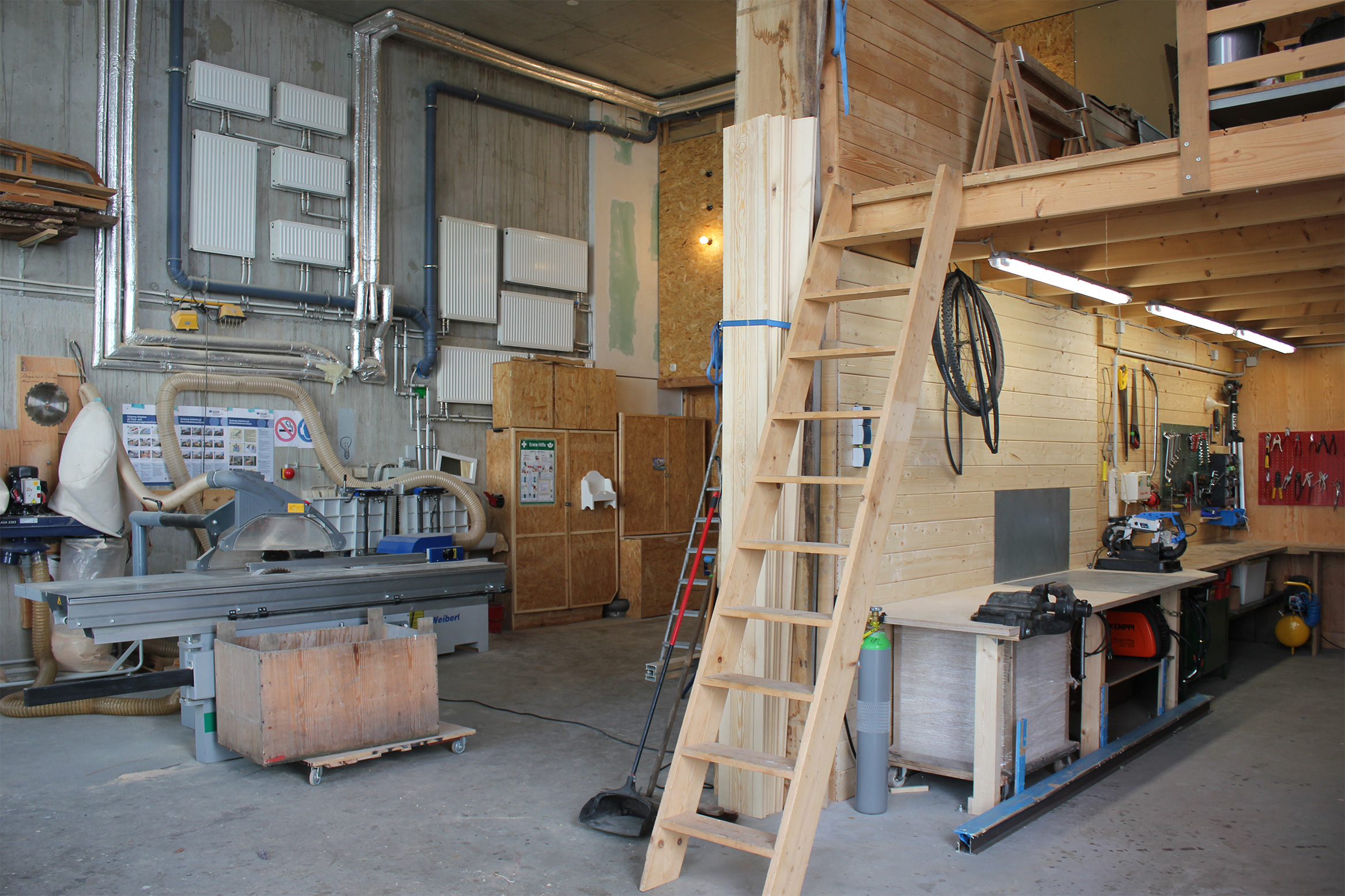 Projects such as Hunziker Areal, Stadterle and wagnisART have a communal laundry room, which reduces the total number of washing machines in the building and the space required for it. In addition, wagnisART has a climbing room in the basement that is accessible to all residents; the Stadterle and Heizenholz projects have a communal workshop.
