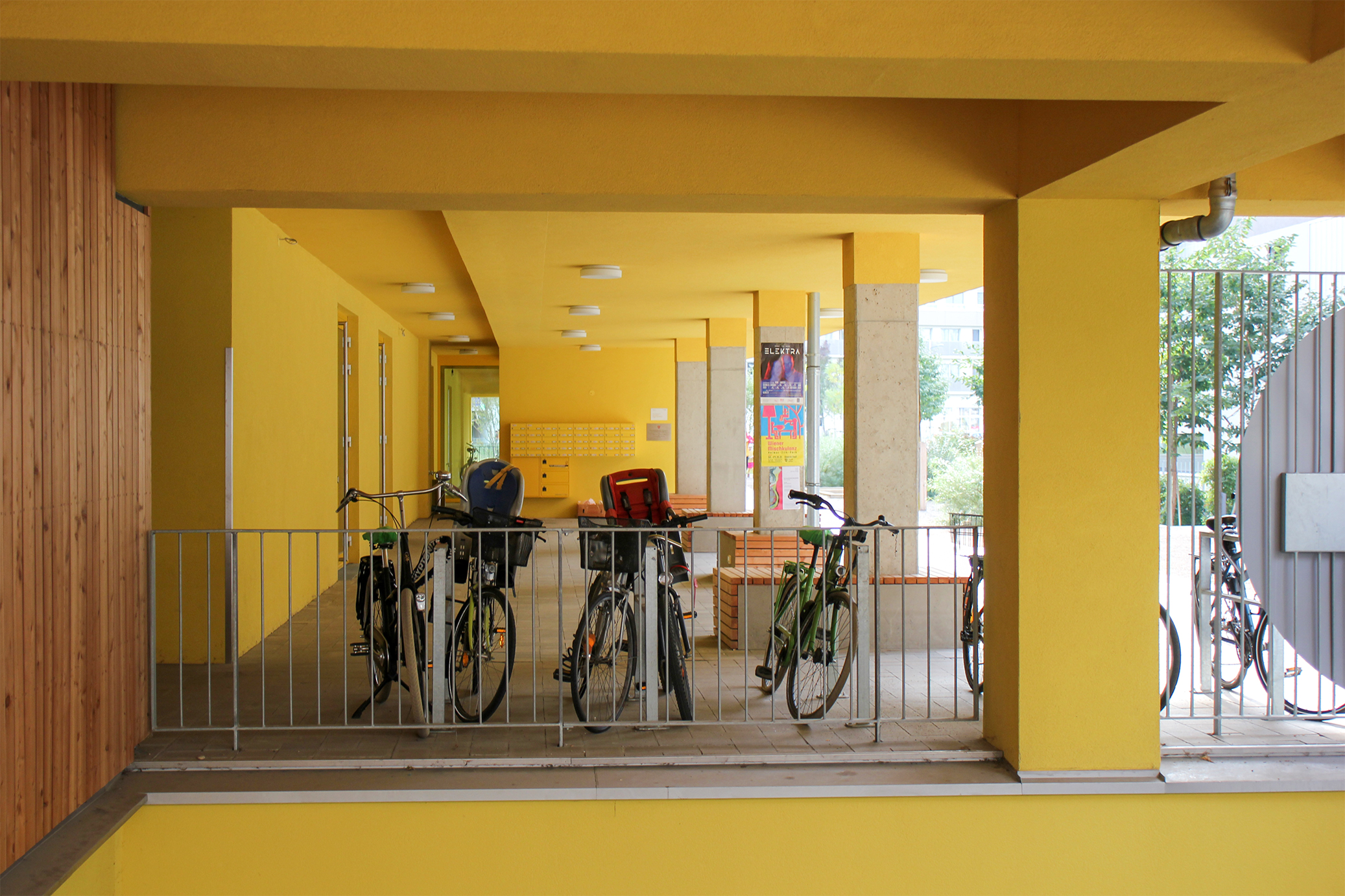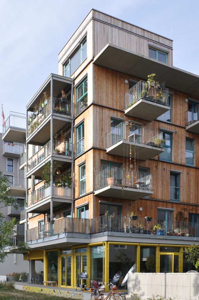 Gleis 21 was realized by the architects einszueins after a three-year planning phase. The way was paved by a participatory process between the future residents and the architects. Thereby, solutions were developed that were customized to the needs of the users, while at the same time providing sufficient openness for future reuse. The so-called “flex apartments (German: Flexwohnungen)” allow more flexibility and can be connected to the neighboring apartments. There are also guest apartments for temporary guests. The project was financed by shares of own funds, in addition to a housing subsidy from the City of Vienna contracted by the “Wohnprojekt Gleis 21“ association.