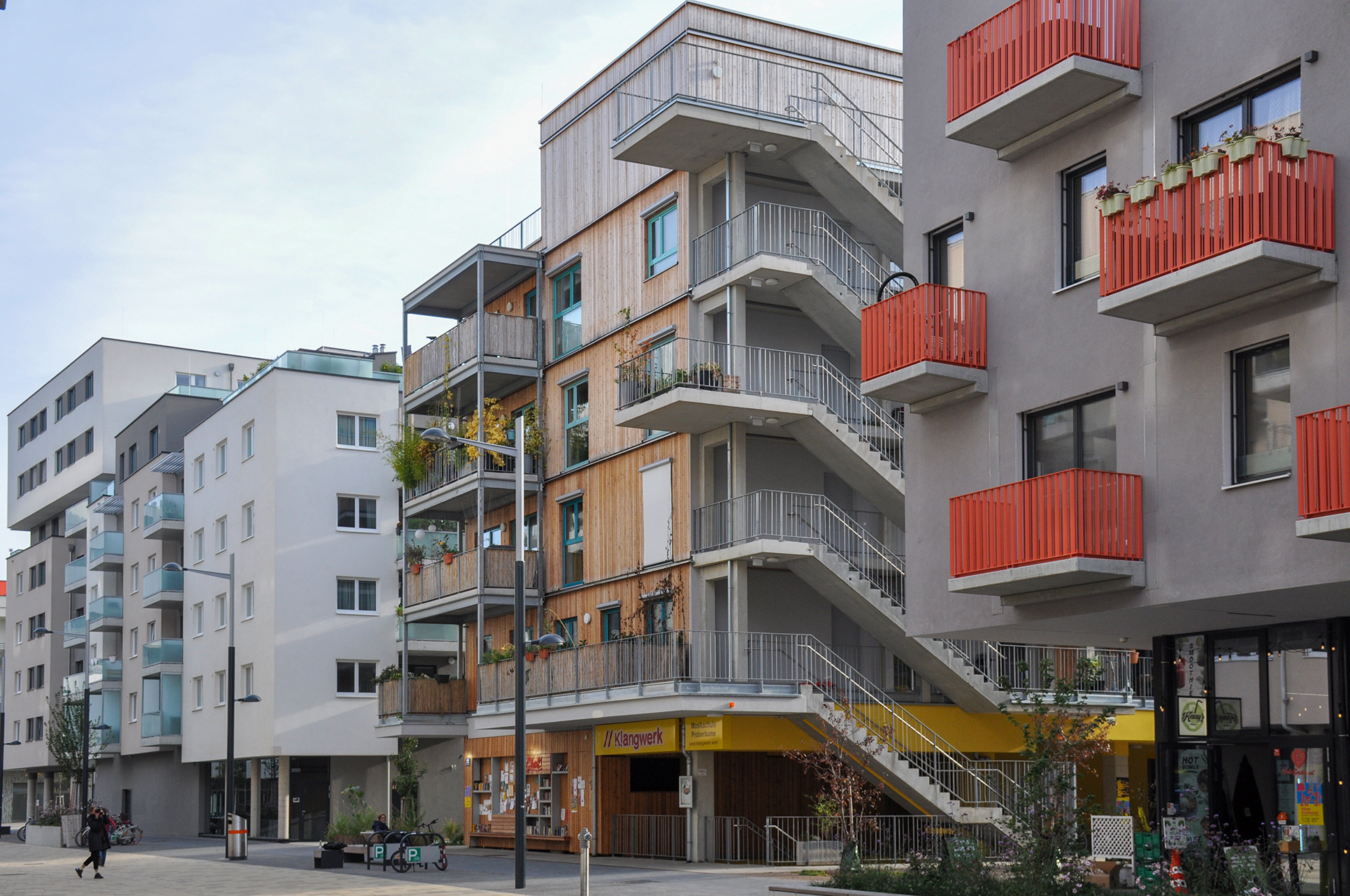 Gleis 21 is part of the newly emerging Sonnenwendviertel district in the direct neighborhood of Vienna’s main train station. Centrally located in the quarter, Gleis 21 with its vibrant first floor zone functions as a meeting point. In addition to the music school “Klangwerk”, which is primarily intended for children, the media workshop offers education courses in media and digital technology as well as language courses. The multifunctional room “Saal 21” offers the possibility and equipment to be used as a theater, cinema or seminar room. The monthly cultural program held there is put together and curated by the “Kunst und Kultur Gleis 21” association, which was founded for this purpose.